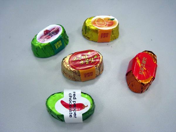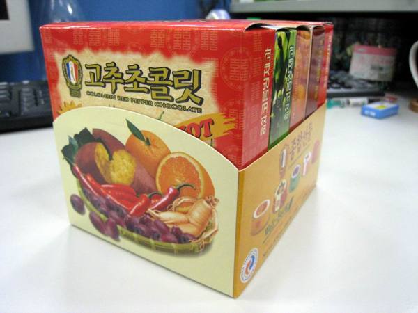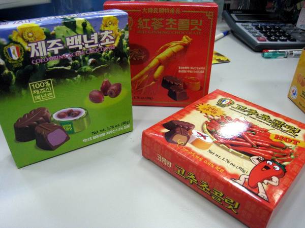 同事從韓國出差回來的喔咪押給~仔細看有些玄機... 先來觀賞一下精美的包裝... 再來個側寫 仔細瞧瞧...有什麼特別的? 其中最屌的三種口味! 辣椒 人蔘 仙人掌(這可能還好)~真是太妙了啦~阿里嵐!!!!(沒意義的呼喊~只是跟韓國有點沾到邊)