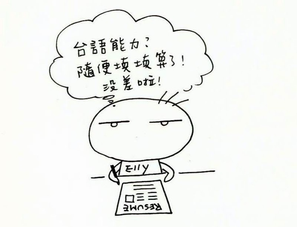 重點來了,畢業之後進入職場,填寫履歷表都有那欄語言能力嘛,寫到台語能力...