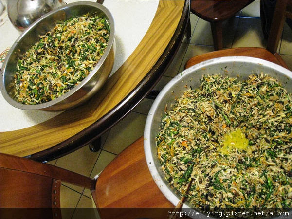 前置作業完成後,最好是兩人一同作業,才能順暢的完成,光炒菜和匯入攪拌大概需要4-6小時吧~