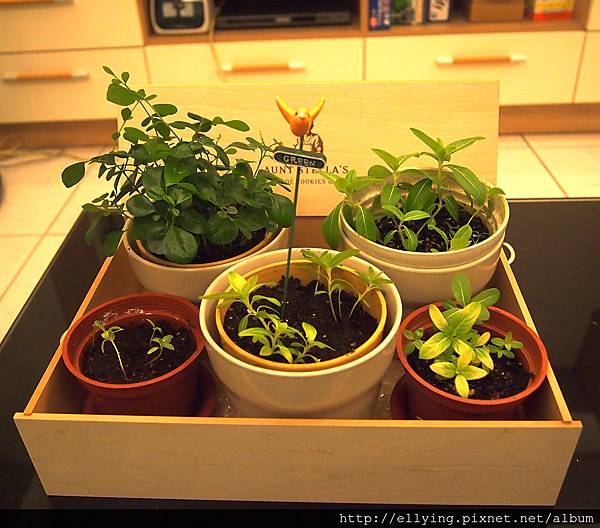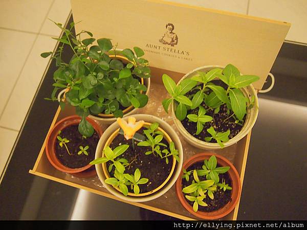 今天整理花園時看到大大小小花盆有些凌亂,靈機一動,把這盒子拿出來利用。