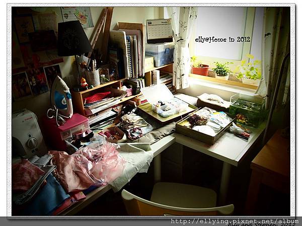 回頭看到這一桌混亂~說真的面對著一窗綠意還有魚家族作伴還真是美好的手作時光!