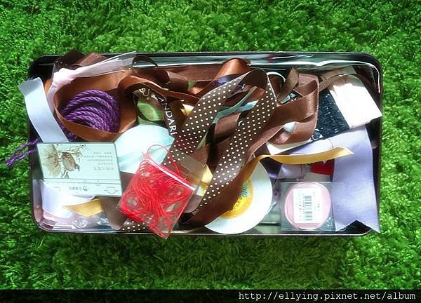 就像圖上的緞帶盒,擅長且喜愛女紅的母親也有一個,收藏著許許多多買來或收集來的緞帶、蕾絲、細碎布片。
